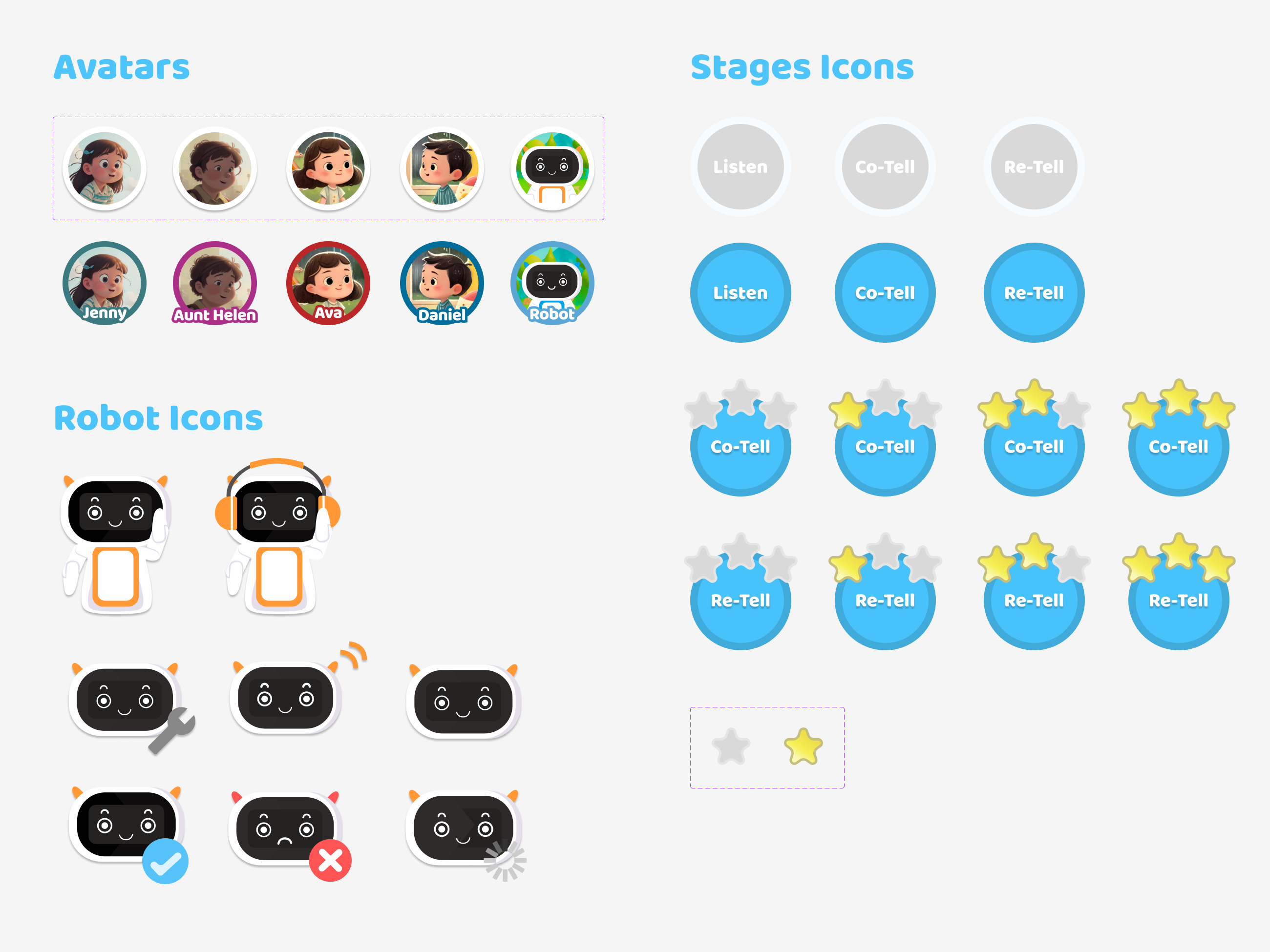 Designed 72 screens for the english social robot application, utilizing a total of 70